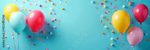 Colorful birthday balloons with confetti on blue background, Festive, Joyful