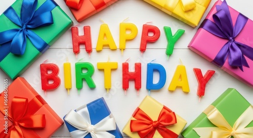 Colorful Birthday Candles with Gift Boxes on White Background