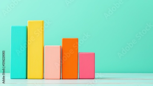 Colorful blocks arranged in ascending order on a pastel background, symbolizing growth and progress.