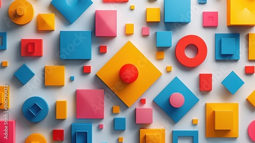 Colorful blocks stacked on white surface create educational toy design