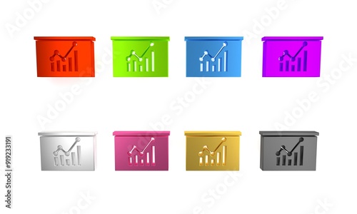 Colorful Board with graph chart icon isolated on white background. Report text file icon. Accounting sign. Audit, analysis, planning. Minimalism concept. 3D render illustration