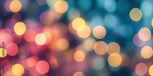 Colorful bokeh background with soft blurred lights in shades of blue, pink, orange, and yellow, creating an abstract dreamy atmosphere.