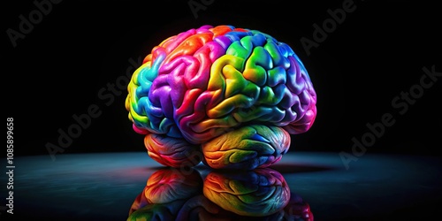 Colorful brain reflection with shadow on dark background