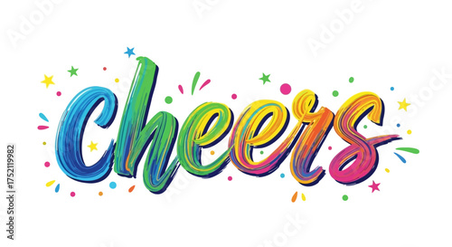 Colorful brushstroke lettering cheers vector illustration on white, white background