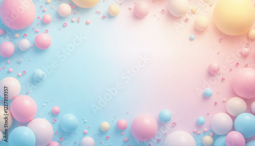 Colorful bubble background with pastel spheres and copy space for text