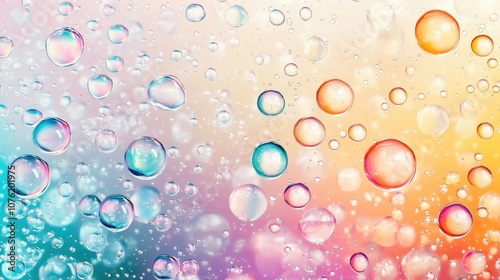 Colorful bubbles floating on a dreamy pastel background, creating a whimsical and vibrant atmosphere.