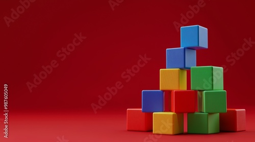 Colorful building blocks isolated on a red background. isolated. Ultra...