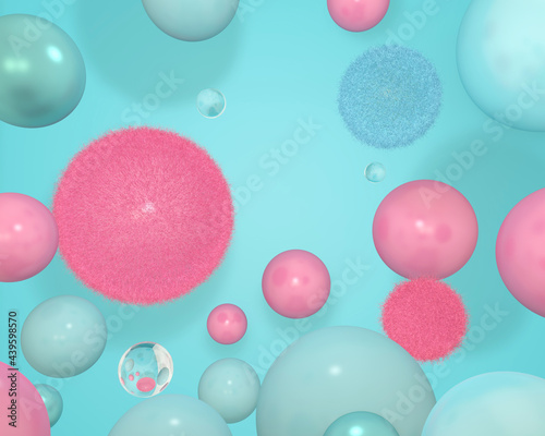 Colorful Bunch of Birthday 3D Balloons Flying for Party in room. 3D illustration, 3D rendering
