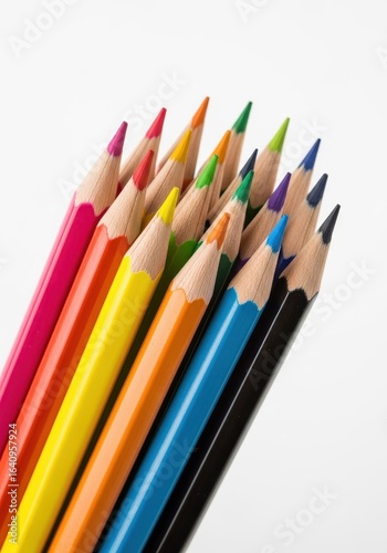 Colorful bunch of sharpened drawing pencils isolated on a white background