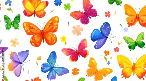 Colorful butterflies and flowers seamless pattern design, spring, nature, textile print