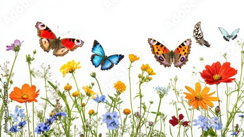 Colorful Butterflies in a Garden Setting