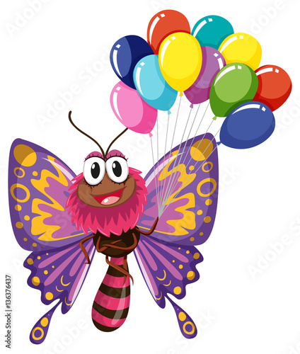 Colorful butterfly holding balloons
