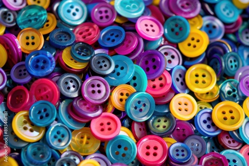 Colorful Buttons. A Pile of Multicolored Buttons with One Smiling. Close-up Detail of Fashionable Plastic Collection