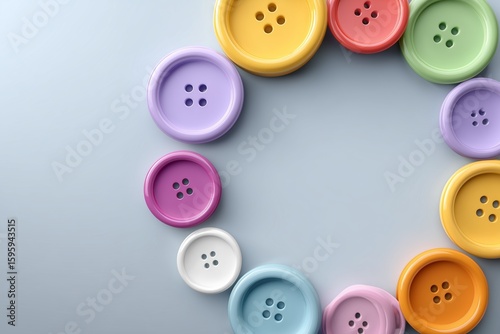 Colorful buttons arranged in a circle on a light background.