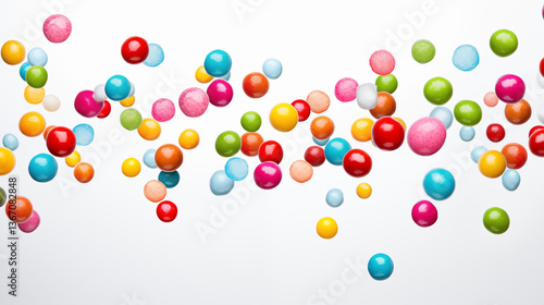 Colorful candies falling on white background