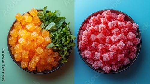 Colorful Candy Cubes in Bowls.
