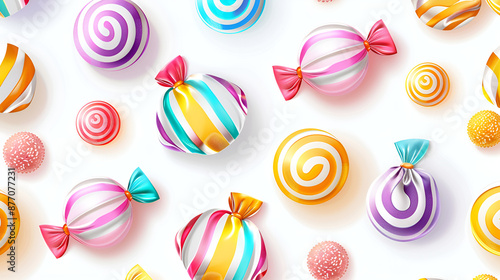 colorful candy .isolated on white background. striped fruit candies isolated on white. Sweet candy. Colorful Candy Isolated on White Background.