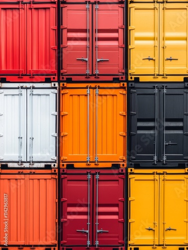 Colorful Cargo Containers Stacked - Shipping, logistics, global trade, vibrant colors, industrial.