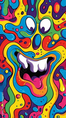 Colorful cartoon face smiling with tongue out background design