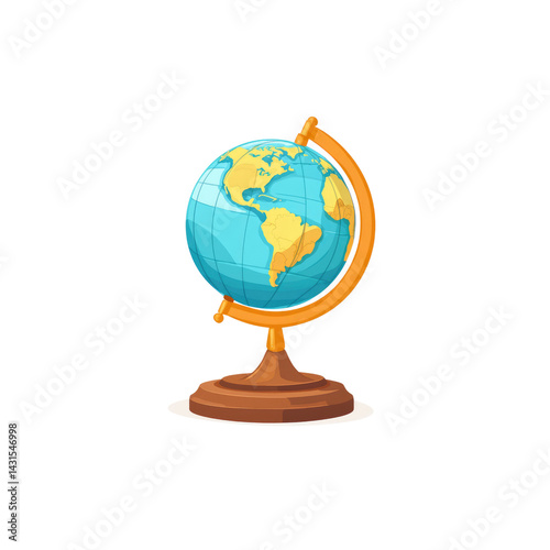 Colorful Cartoon Globe on Wooden Stand World Map Illustration