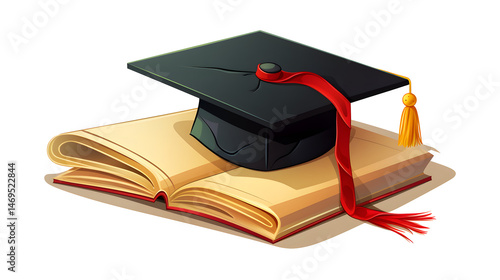 Colorful Cartoon Graduation Cap and Diploma Vector Illustration for Academic Success Concepts