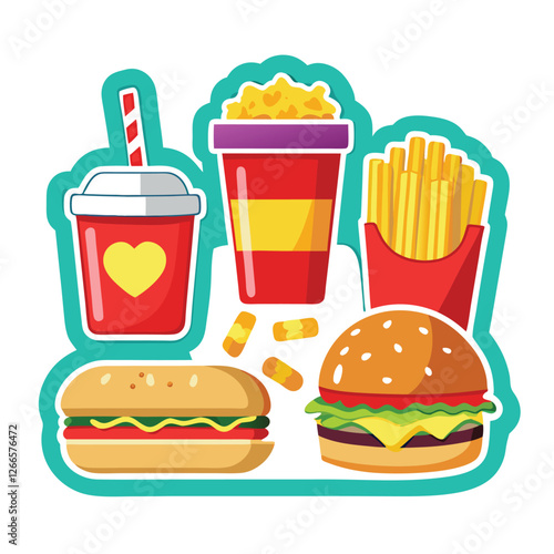 Colorful cartoon illustration of a fast food combo meal