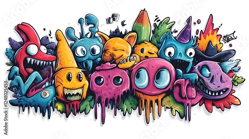Colorful Cartoon Monster Creatures in Whimsical Graffiti Style
