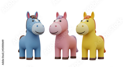 Colorful Cartoon Plush Toy Donkeys in Bright Studio Setting