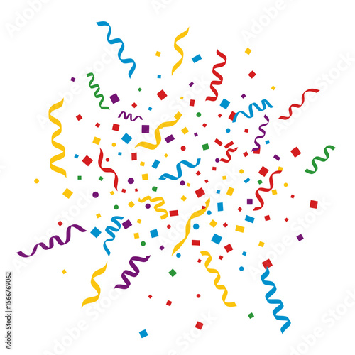 Colorful celebration with a vibrant explosion of paint splashes and falling confetti patterns