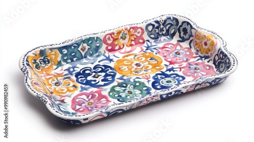 Colorful ceramic serving tray with floral patterns, perfect for enhancing any dining experience or decoration.