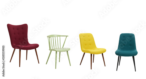 Colorful Chair Collection Showcase on White Background for Interior Design