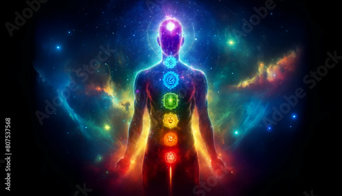 Colorful Chakra Yoga Meditation Position HD Wallpaper Generative AI