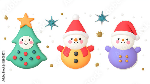 Colorful Christmas Cookies with Snowmen and Christmas Tree Decorations Perfect for Holiday Festivities and Celebrations in a Joyful and Whimsical Style