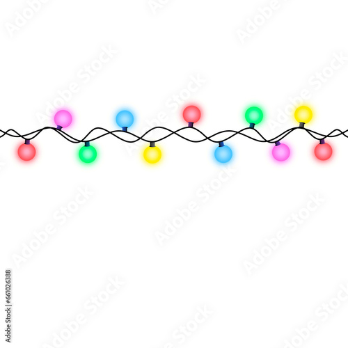 Colorful Christmas Light String on transparent background.
