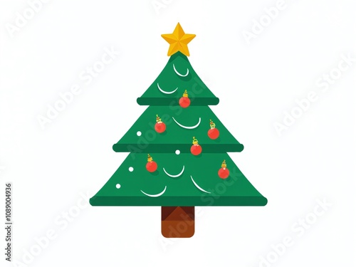 Colorful Christmas tree decorated with ornaments, baubles and a star at the top, suitable for festive celebrations and holiday cheer