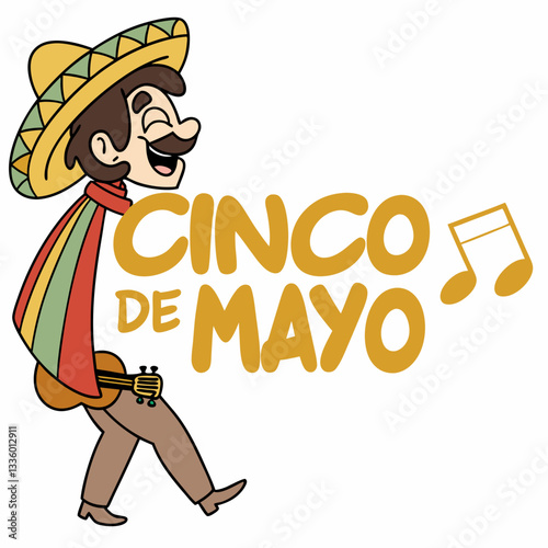 Colorful Cinco de Mayo Cartoon Character Playing Guitar