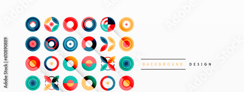 Colorful circles in a grid composition abstract background. Design for wallpaper, banner, background, landing page, wall art, invitation, prints, posters