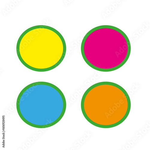 Colorful circles set. Green outline shapes. Geometric round elements. Vector spot illustration.