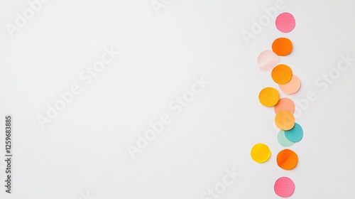 Colorful circular confetti arranged vertically on a clean white background for festive celebrations