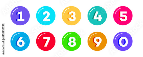 Colorful Circular Number Buttons 0 to 9, Design Elements, Interface Icons