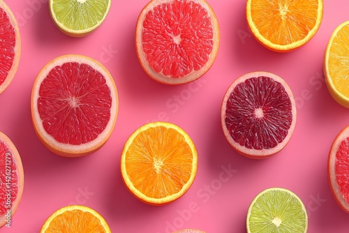 Colorful citrus fruits arranged on a pink background create a vibrant and fresh display of nature’s flavors
