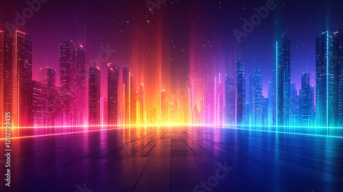 Colorful city skyline with vibrant lights during night