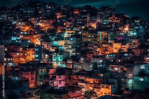 Colorful cityscapes, many homes with many colours