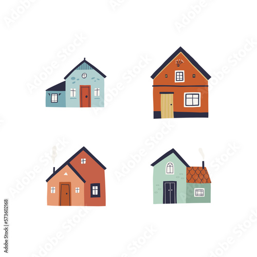 Colorful clipart set, hand-drawn buildings in a trendy style with cute details.