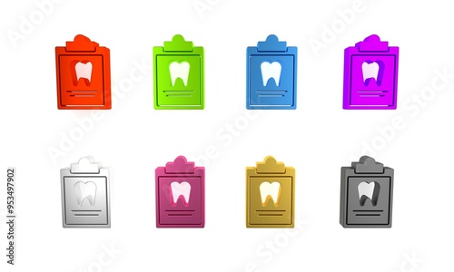 Colorful Clipboard with dental card or patient medical records icon isolated on white background. Dental insurance. Dental clinic report. Minimalism concept. 3D render illustration