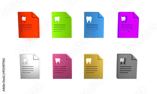 Colorful Clipboard with dental card or patient medical records icon isolated on white background. Dental insurance. Dental clinic report. Minimalism concept. 3D render illustration