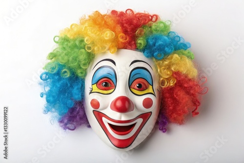 Colorful Clown Mask With Vibrant Multicolored Hair Displayed on a Clean White Background Generative AI
