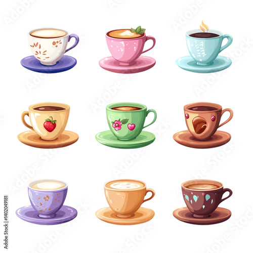 Colorful Coffee Cups Delightful Morning Beverage Collection