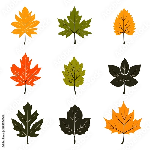 Colorful collection of four unique leaves illustrating autumns rich palette and diversity