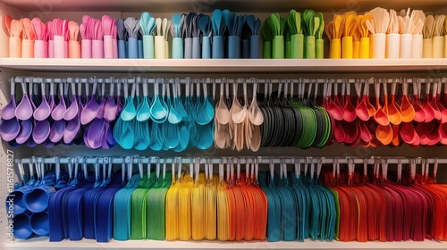 Colorful Collection of Plastic Spoons and Forks in Various Shades